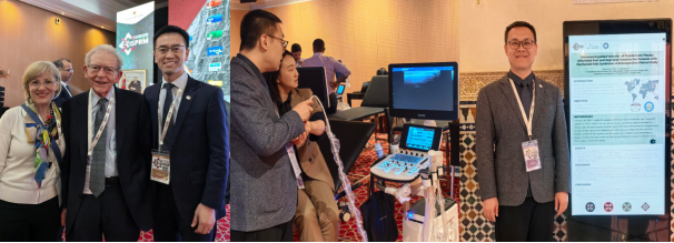 四川大学华西医院团队何红晨教授与与John Melvin教授合影;余曦及艾绍龙医师参与肌骨超声工作坊及壁报展示